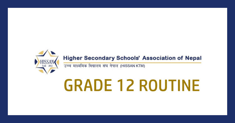 Higher Institutions and Secondary Schools' Association Nepal (HISSAN), Central Office, Kathmandu published examination routine for Grade 12 which will be held on 2082 B.S.
